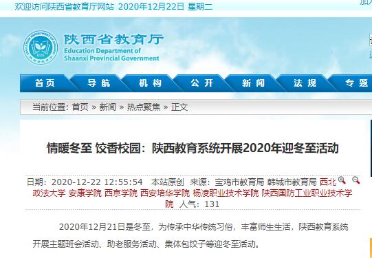 【陕西省教育厅】情暖冬至 饺香校园:陕西教育系统开展2020年迎冬至活动