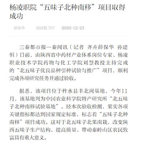【三秦都市报】杨凌职院“五味子北种南移”项目取得成功