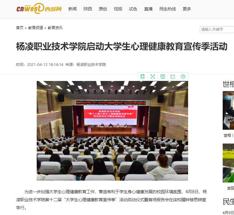 【西部网】杨凌职业技术学院启动大学生心理健康教育宣传季活动