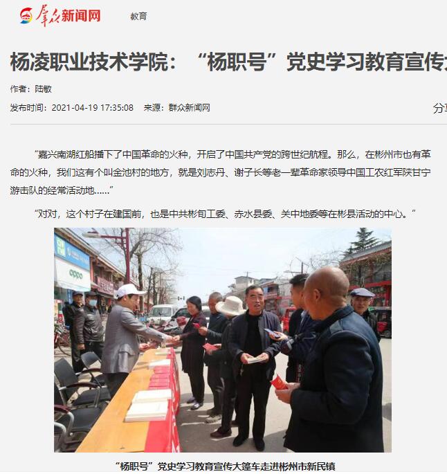 【群众新闻网】杨凌职业技术学院:“杨职号”党史学习教育宣传大篷车驶入彬州市