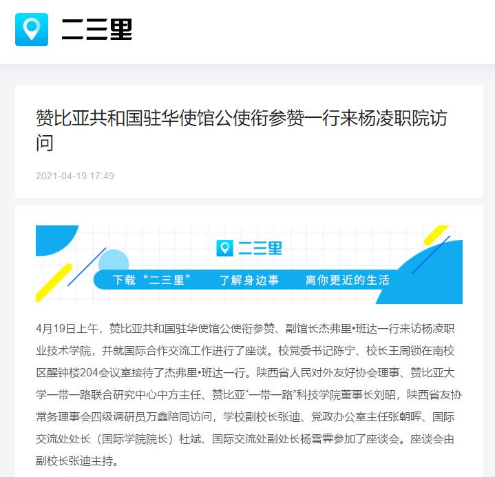 【二三里】赞比亚共和国驻华使馆公使衔参赞一行来杨凌职院访问