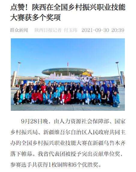 【群众新闻】点赞!陕西在全国乡村振兴职业技能大赛获多个奖项