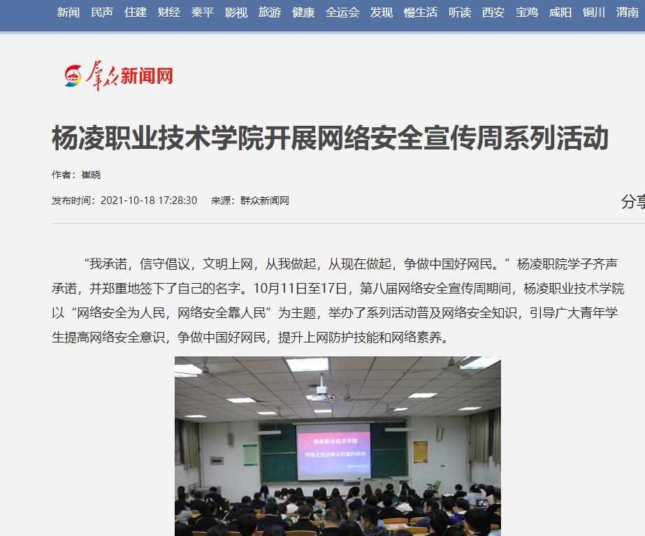 【群众新闻网】杨凌职业技术学院开展网络安全宣传周系列活动