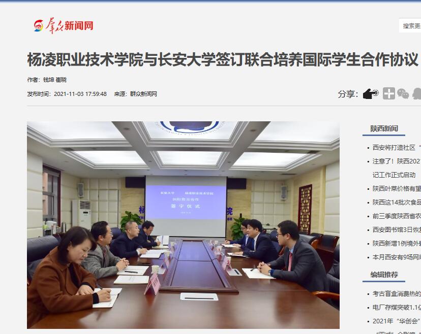 【群众新闻网】杨凌职业技术学院与长安大学签订联合培养国际学生合作协议