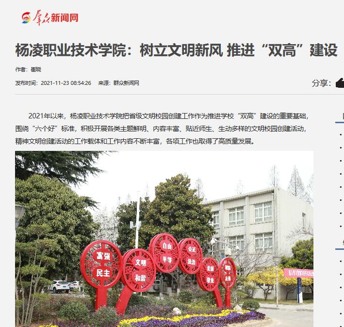 【群众新闻网】杨凌职业技术学院:树立文明新风 推进“双高”建设