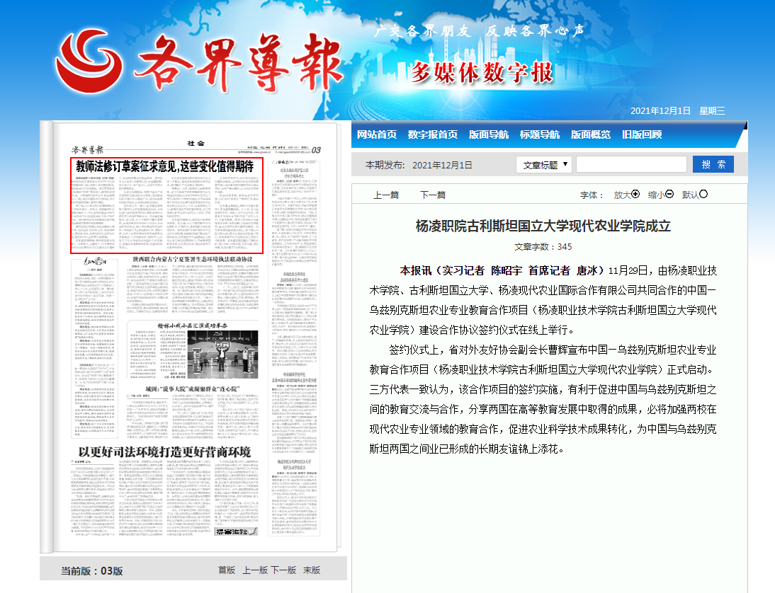 【各界导报】杨凌职院古利斯坦国立大学现代农业学院成立