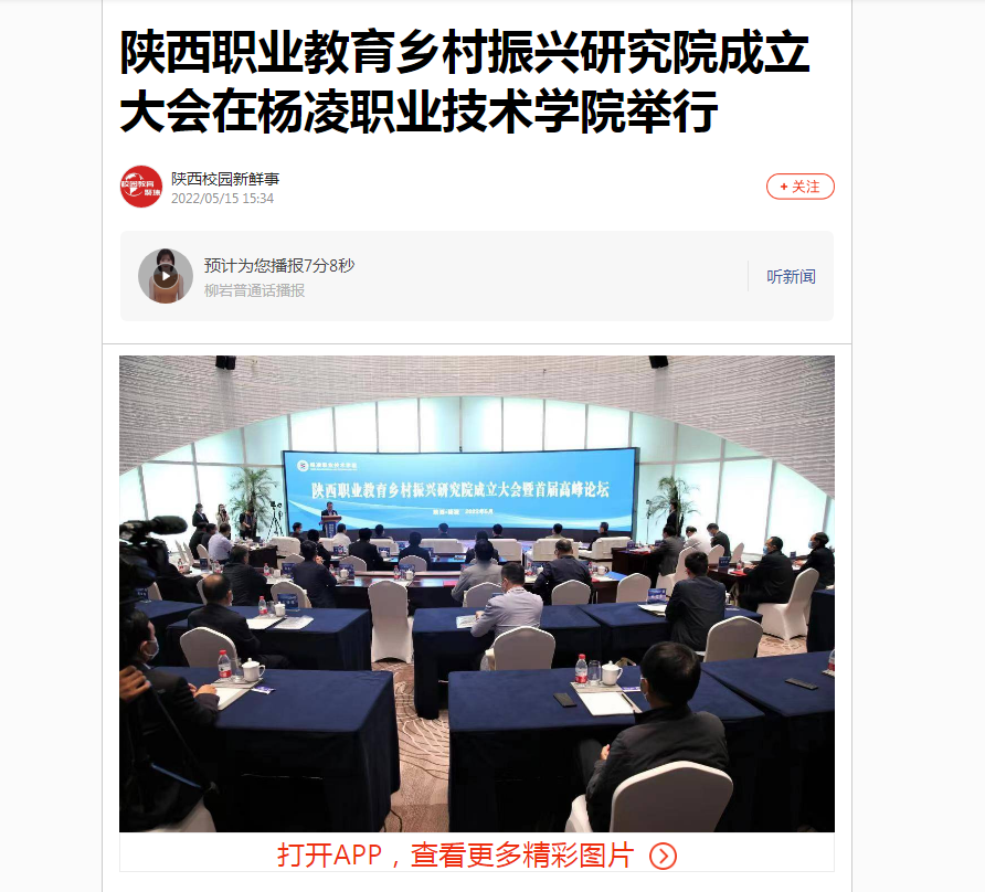 批复指出,陕西职业教育乡村振兴研究依托杨凌职业技术学院成立,为独立运行的学术研究机,陕西职业教育构,要面向“三农”,积极开展理论研究,构建“产教融合、科教协同、校际共享、校地一体”的运行机制。研究院要通过开展理论研究、咨询服务、学术交流等,探索职业教育服务乡村振兴战略新路径,创新职业教育产教融合新模式,努力将研究院打造为高水平理论研究基地,为提升职业教育服务乡村振兴战略和经济社会发展能力做出新的贡献。