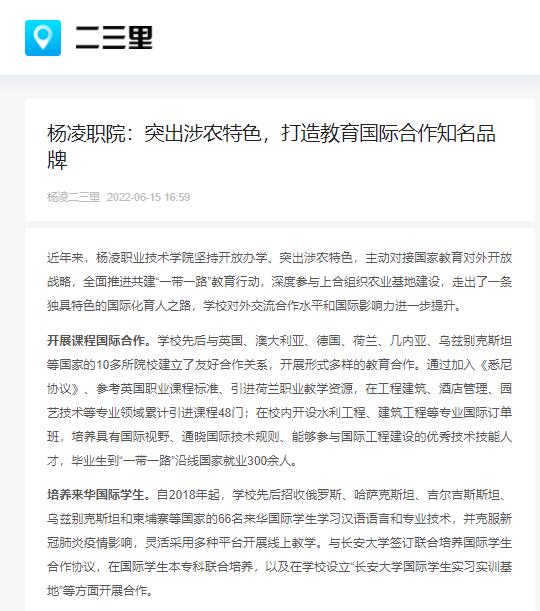 【二三里】杨凌职院:突出涉农特色,打造教育国际合作知名品牌