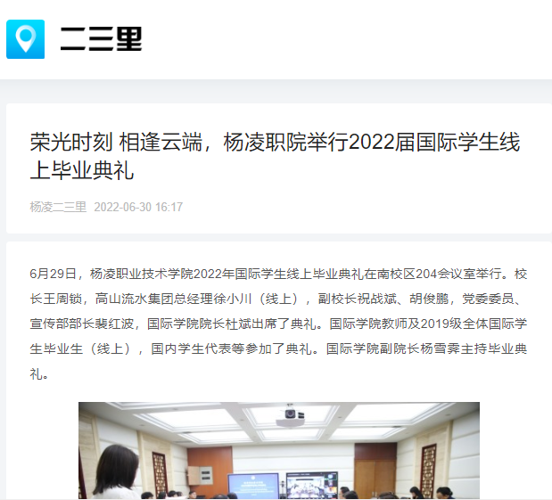 【二三里】荣光时刻 相逢云端,杨凌职院举行2022届国际学生线上毕业典礼