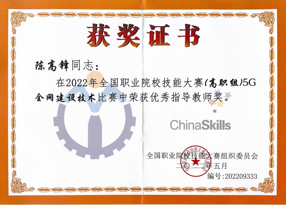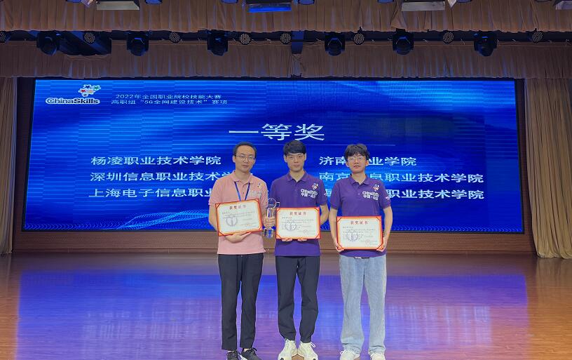 8月22日至23日,2022年全国职业院校技能大赛高职组“5G全网建设技术”赛项在济南职业学院举办,来自全国28个省、56支代表队、112名选手参加了比赛。经过8个小时的激烈比拼,杨凌职院信息工程学院学生郑嘉昊、曹文森以总分排名全国第一的成绩,荣获一等奖第一名,取得自参赛以来历史最好成绩,指导教师康晋、陈高锋荣获大赛优秀指导教师奖。