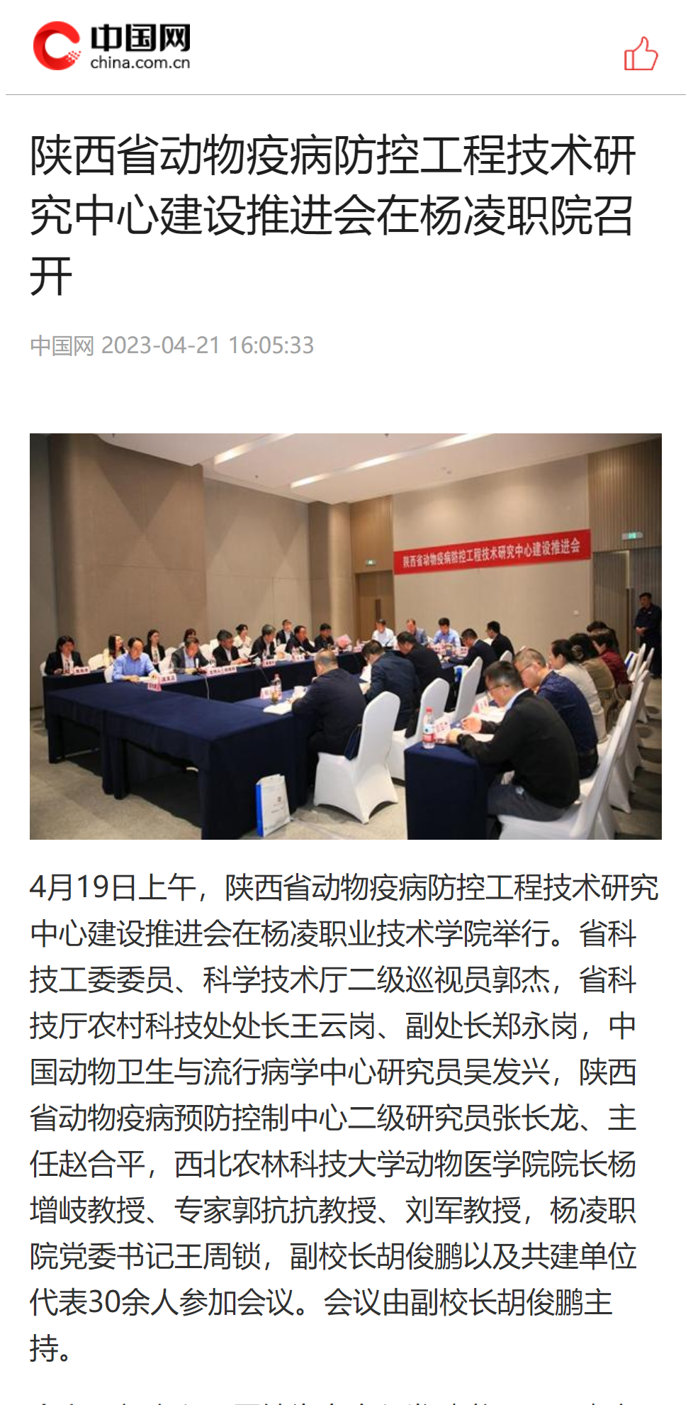 【中国网】陕西省动物疫病防控工程技术研究中心建设推进会在杨凌职院召开
