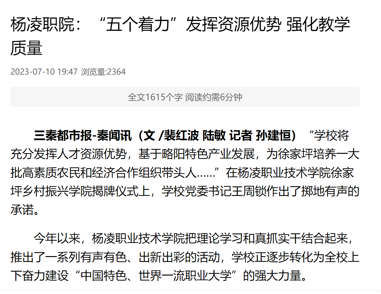 【秦闻】杨凌职院:“五个着力”发挥资源优势 强化教学质量