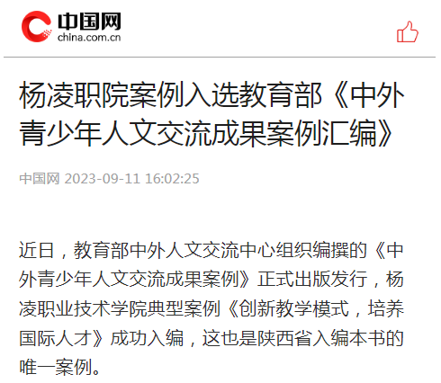 【中国网】杨凌职院案例入选教育部《中外青少年人文交流成果案例汇编》