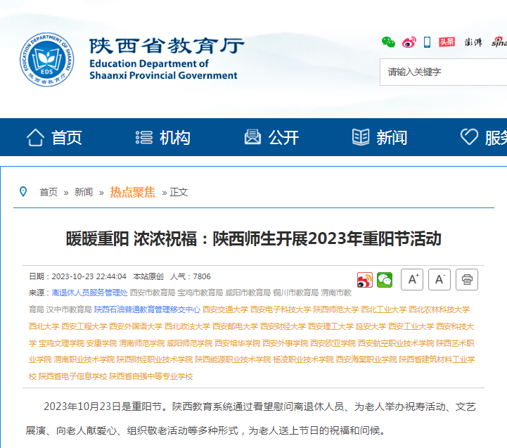 【陕西省教育厅】暖暖重阳 浓浓祝福:陕西师生开展2023年重阳节活动