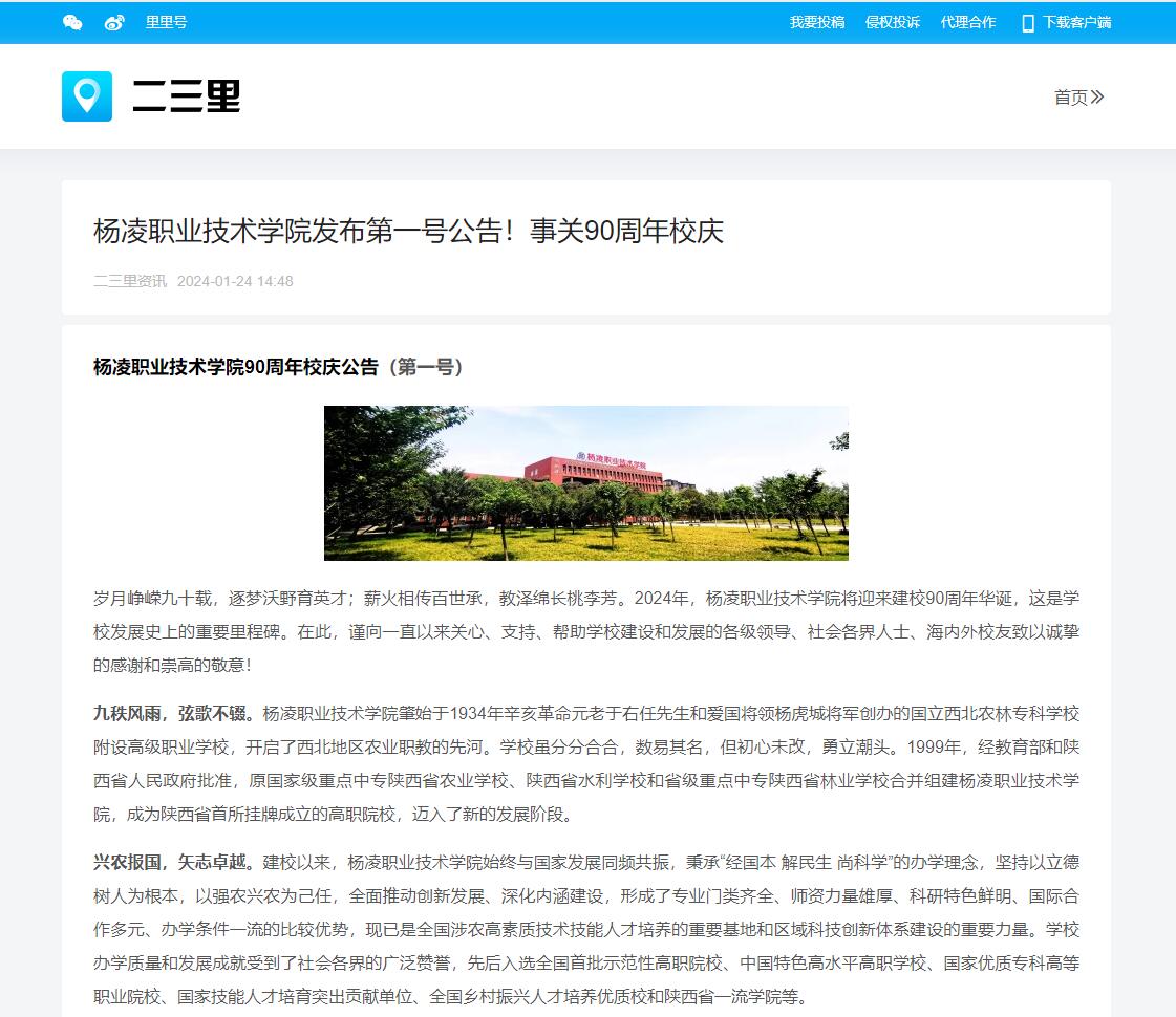 【二三里】杨凌职业技术学院发布第一号公告!事关90周年校庆