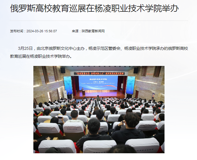 【陕西教育新闻网】俄罗斯高校教育巡展在杨凌职业技术学院举办