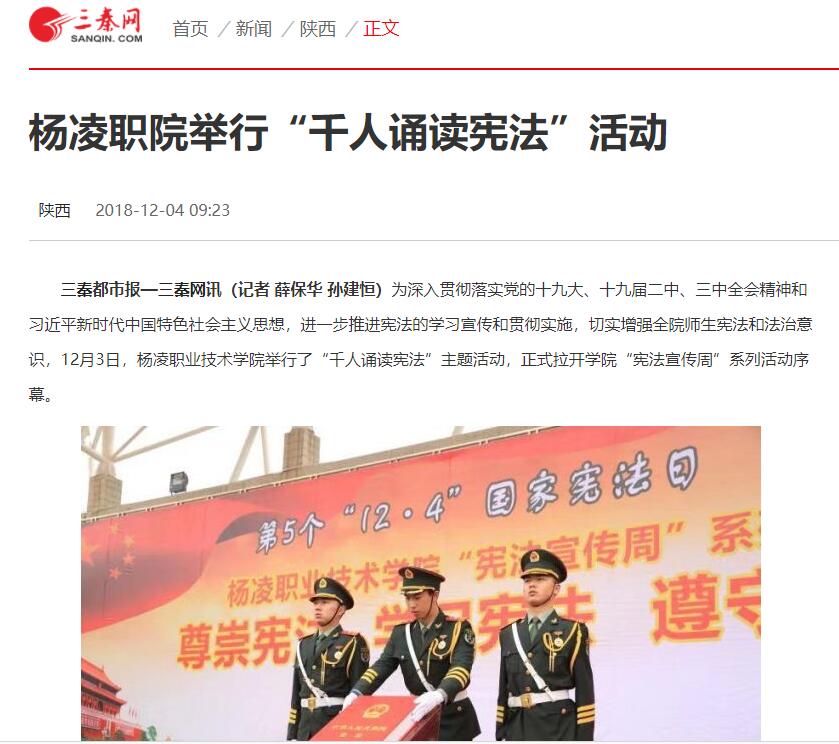 【三秦网】杨凌职院举行“千人诵读宪法”活动