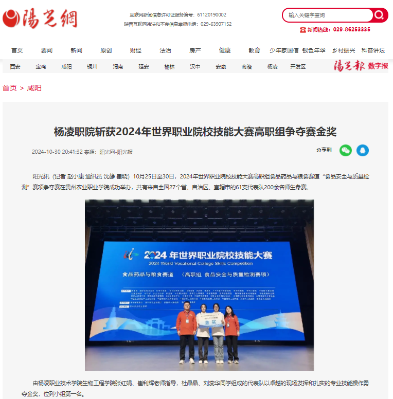 【阳光网】杨凌职院斩获2024年世界职业院校技能大赛高职组争夺赛金奖