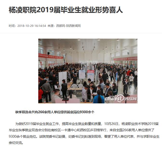 为做好2019届毕业生就业工作,提高毕业生就业数量和质量,10月26日,杨凌职业技术学院2019届毕业生秋季就业双选会分别在南校区一卡通中心和西校区乒羽馆举行,来自全国266家用人单位提供了9300余个就业岗位。该院党委书记赵曼、纪委书记刘粉莲到现场,看望了用人单位代表,并与求职毕业生亲切交流。