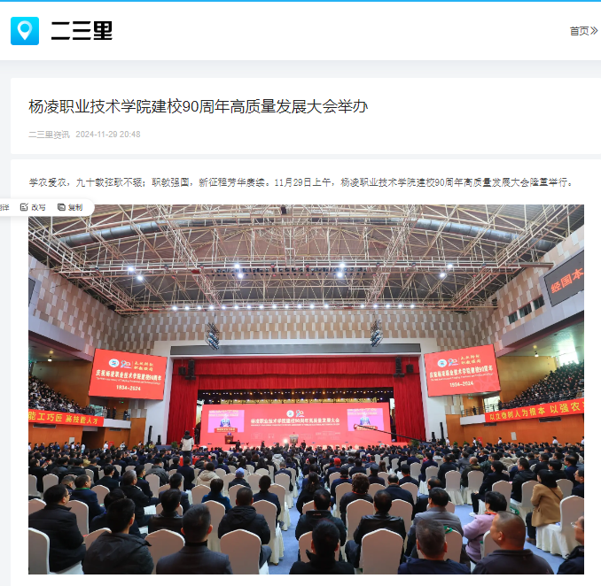 【二三里】杨凌职业技术学院建校90周年高质量发展大会举办