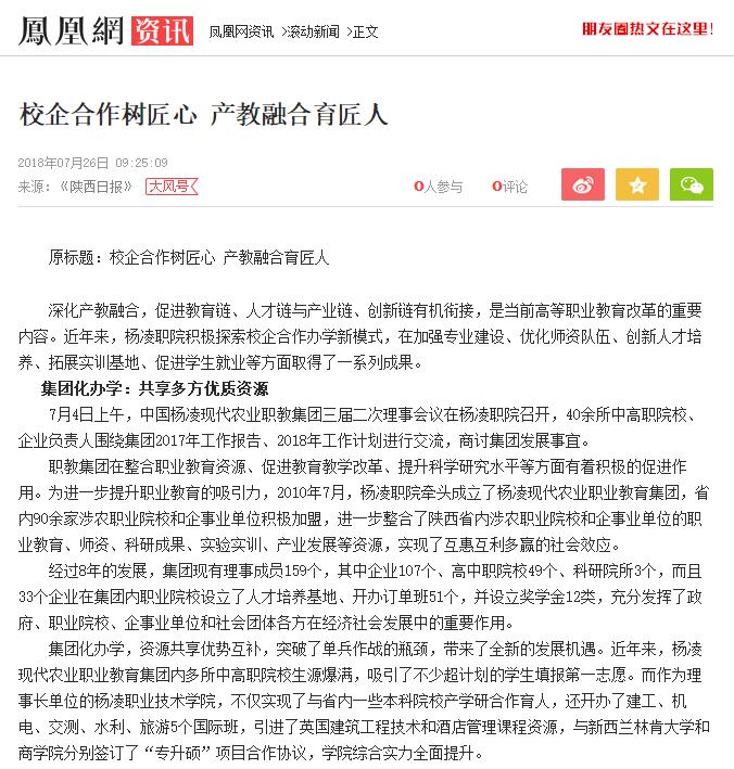 面对新形势下国家赋予职业教育的新要求、新使命,杨凌职院将加快推进与企业、行业的融合发展,采取开放、包容的办学态度,继续深化校企合作、促进产教融合,持续提高人才培养质量,不断为我国高职教育科学发展探路。