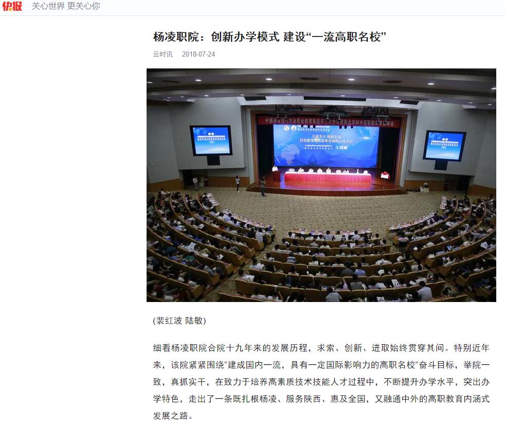 细看杨凌职院合院十九年来的发展历程,求索、创新、进取始终贯穿其间。特别近年来,该院紧紧围绕“建成国内一流,具有一定国际影响力的高职名校”奋斗目标,举院一致,真抓实干,在致力于培养高素质技术技能人才过程中,不断提升办学水平,突出办学特色,走出了一条既扎根杨凌、服务陕西、惠及全国,又融通中外的高职教育内涵式发展之路。