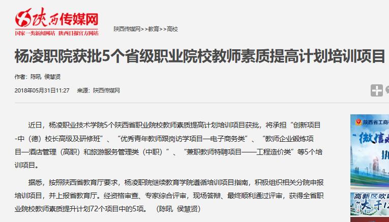 【陕西传媒网】杨凌职院获批5个省级职业院校教师素质提高计划培训项目