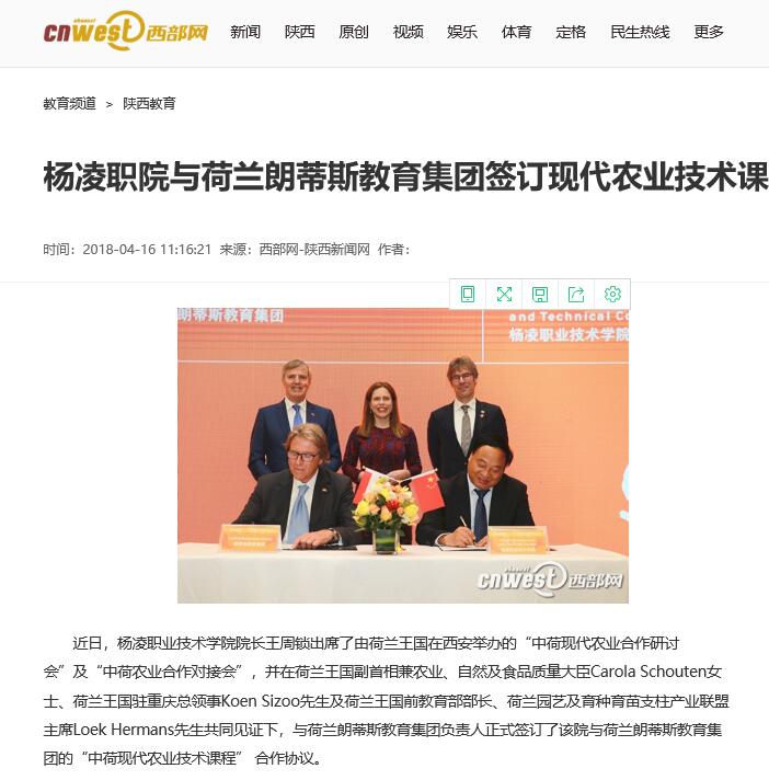【西部网】杨凌职院与荷兰朗蒂斯教育集团签订现代农业技术课程合作协议