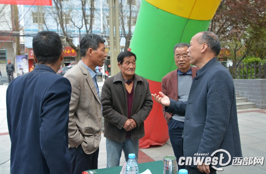 在职教中心对面的广场上,科技咨询活动也在同期进行中。蔬菜、果树、种养殖等不同专业的专家们纷纷助阵,农民与专家们交谈甚欢,其中,麟游县九成宫镇副镇长张焕平是要的资料最多、问的问题也最多的人。他说:“杨凌专家来我们麟游好几次了,上次通过培训很有收获,这次活动还有专家咨询,趁机会我就把我们镇畜牧业发展中的一些疑难问题跟老师们交流一下。”