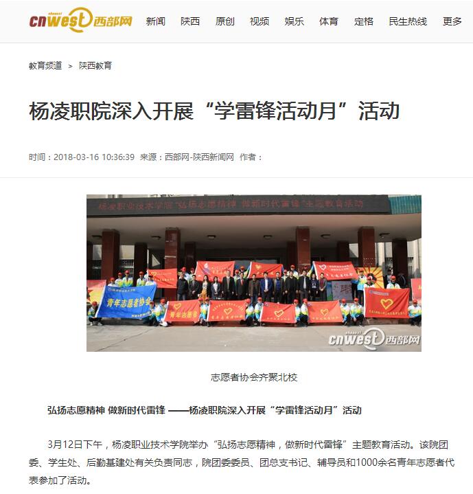 弘扬志愿精神 做新时代雷锋 ——杨凌职院深入开展“学雷锋活动月”活动