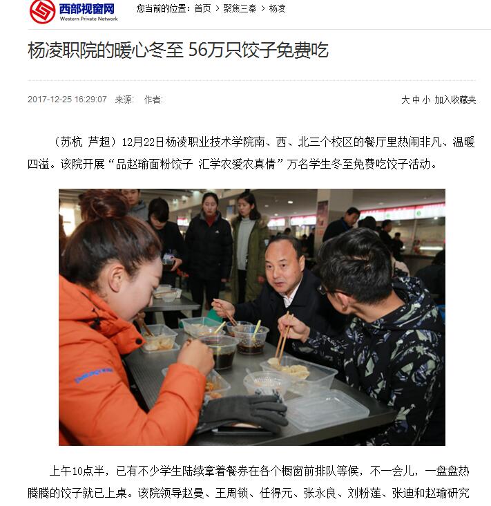 【西部视窗网】杨凌职院的暖心冬至 56万只饺子免费吃