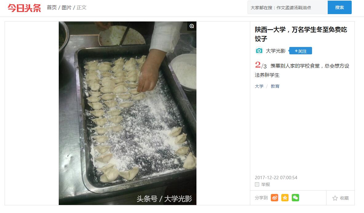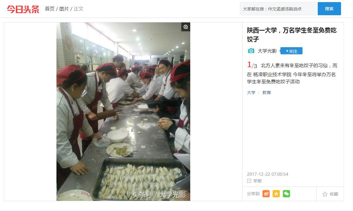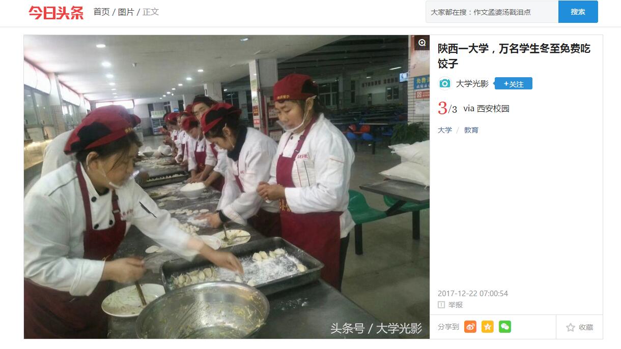 【今日头条】陕西一大学,万名学生冬至免费吃饺子