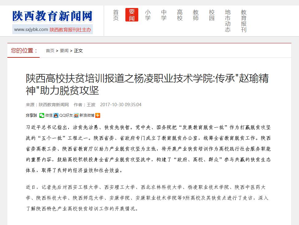 【陕西教育新闻网】杨凌职业技术学院:传承"赵瑜精神"助力脱贫攻坚