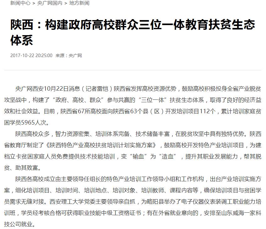 【央广网】陕西:构建政府高校群众三位一体教育扶贫生态体系