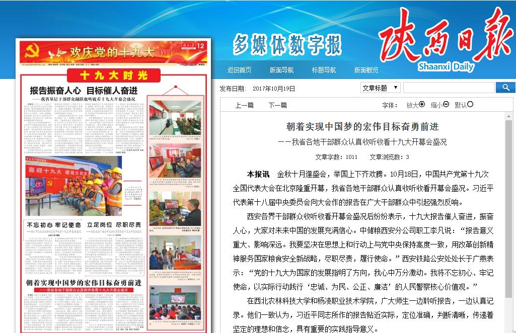 【陕西日报】我省各地干部群众认真收听收看党的十九大开幕会盛况