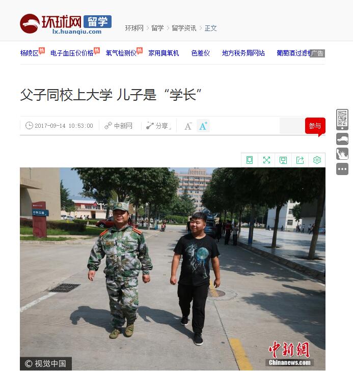 9月14日消息,这个开学季,杨凌职业技术学院(简称杨凌职院)校园里有一对特殊的父子,父亲是富平县庄里镇神芝村44岁的孙新科,他是杨凌职院生物工程分院富平职业农民学历教育班的一名新生,9月10日报名后,他正式成为一名大学生。而他21岁的儿子孙英康是该院交通与测绘工程分院工程测量技术专业的大二学生,算是父亲的“学长”了。