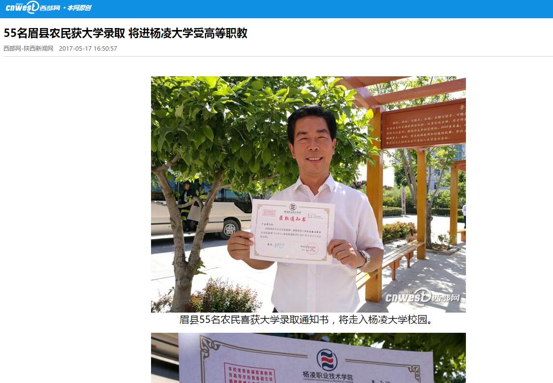 眉县55名农民喜获大学录取通知书,将走入杨凌大学校园。