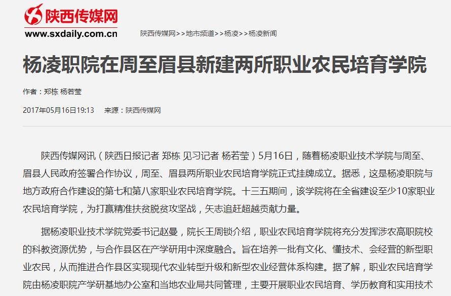 【陕西传媒网】杨凌职院在周至眉县新建两所职业农民培育学院