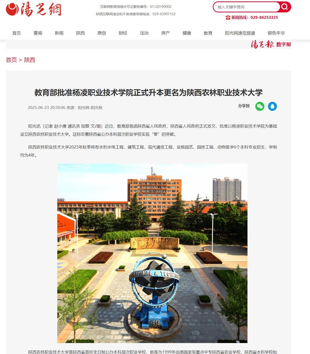 阳光讯(记者 赵小康 通讯员 陆敏 文/图)近日,教育部致函陕西省人民政府,陕西省人民政府正式发文,批准以杨凌职业技术学院为基础设立电子游艺官网。这标志着陕西省公办本科层次职业学校实现“零”的突破。