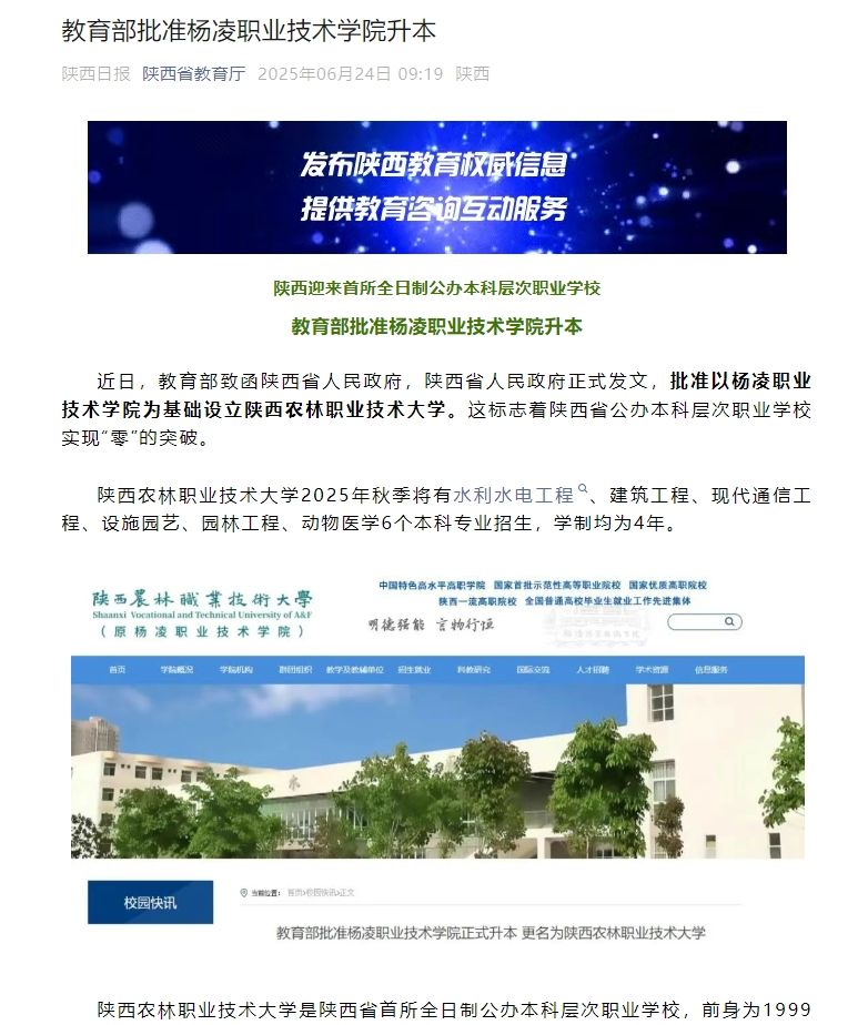 近日,教育部致函陕西省人民政府,陕西省人民政府正式发文,批准以杨凌职业技术学院为基础设立电子游艺官网。这标志着陕西省公办本科层次职业学校实现“零”的突破。