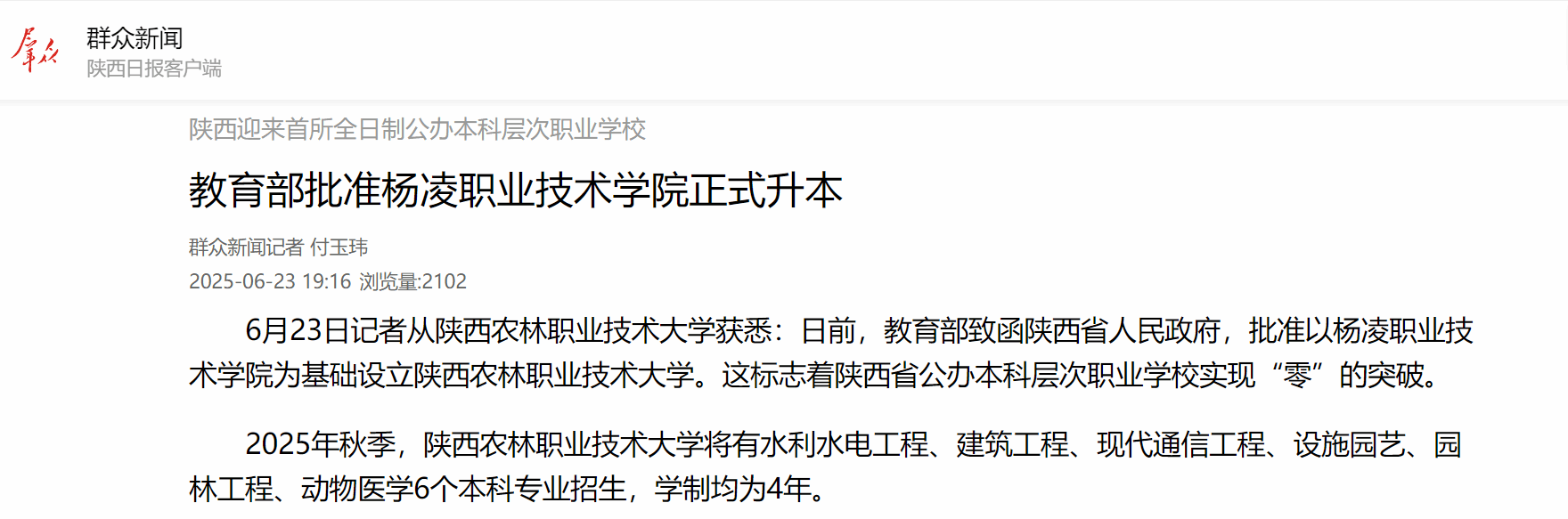 6月23日记者从电子游艺官网获悉:日前,教育部致函陕西省人民政府,批准以杨凌职业技术学院为基础设立电子游艺官网。这标志着陕西省公办本科层次职业学校实现“零”的突破。
