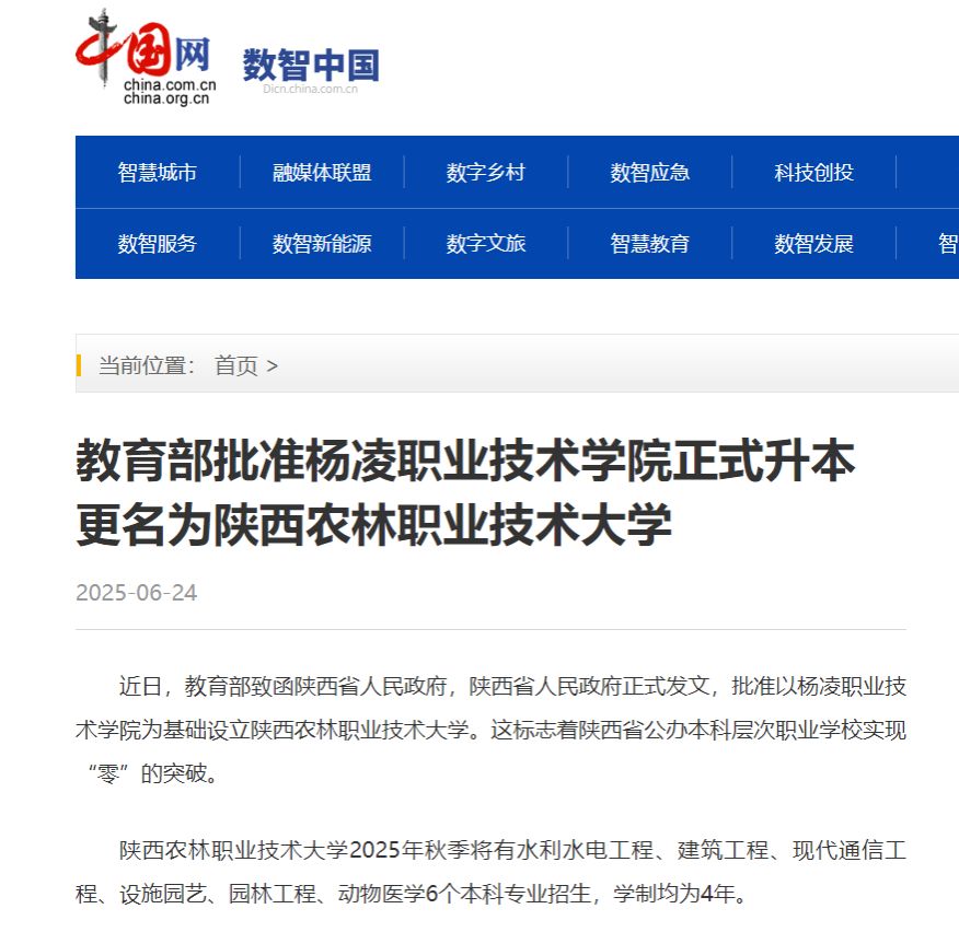 【中国网】教育部批准杨凌职业技术学院正式升本 更名为电子游艺官网