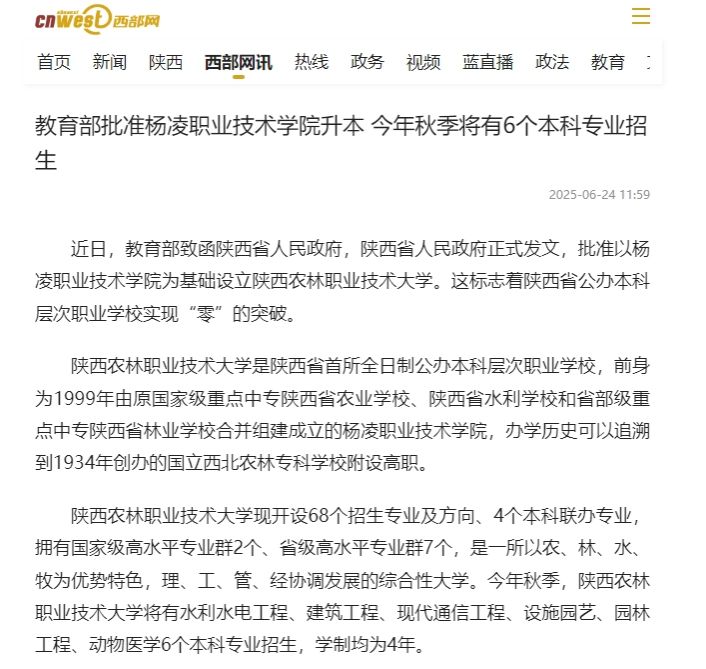 近日,教育部致函陕西省人民政府,陕西省人民政府正式发文,批准以杨凌职业技术学院为基础设立电子游艺官网。这标志着陕西省公办本科层次职业学校实现“零”的突破。