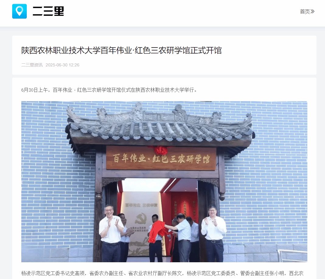 韩明军在致辞中指出,建设百年伟业·红色三农研学馆是学校深入学习贯彻习近平总书记关于“三农”工作重要论述的重要体现。他表示,学校将以研学馆为平台,教育引导广大师生深入了解中国共产党解决“三农”问题的光辉历程,厚植“三农”情怀,不忘初心使命,勇挑强农兴农重担。作为庆祝中国共产党成立100周年主题展巡展点、全省农村基层干部培训基地、杨凌示范区研学教育实践基地,研学馆将积极主动服务杨凌示范区发展,服务、辐射全省、全国旱区乃至全国党员干部、大中小学生的红色三农教育工作,凝聚更加强大的力量,为农业高质高效、乡村宜居宜业、农民富裕富足作出更大的贡献。