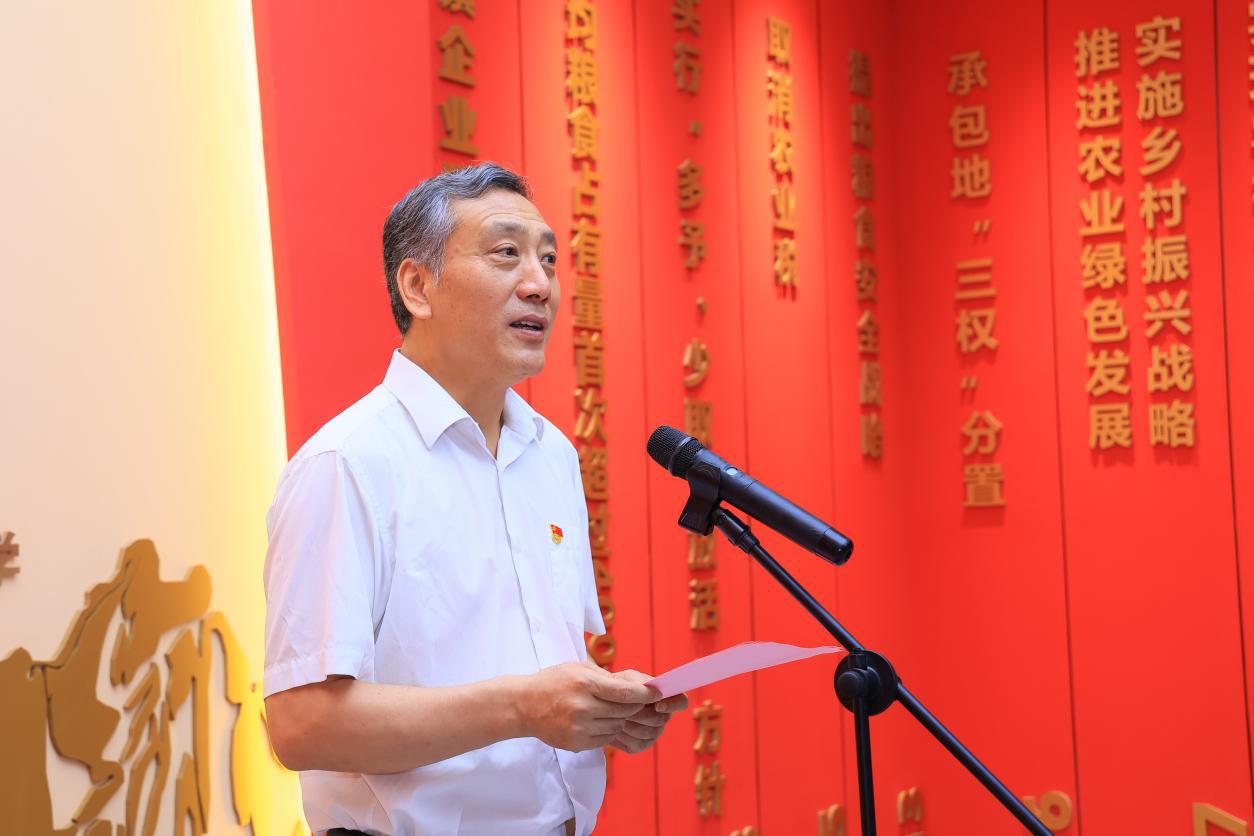 韩明军在致辞中指出,建设百年伟业·红色三农研学馆是学校深入学习贯彻关于“三农”工作重要论述的重要体现。他表示,学校将以研学馆为平台,教育引导广大师生深入了解中国共产党解决“三农”问题的光辉历程,厚植“三农”情怀,不忘初心使命,勇挑强农兴农重担。作为庆祝中国共产党成立100周年主题展巡展点、全省农村基层干部培训基地、杨凌示范区研学教育实践基地,研学馆将积极主动服务杨凌示范区发展,服务、辐射全省、全国旱区乃至全国党员干部、大中小学生的红色三农教育工作,凝聚更加强大的力量,为农业高质高效、乡村宜居宜业、农民富裕富足作出更大的贡献。