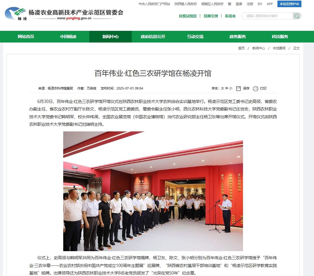 6月30日,百年伟业·红色三农研学馆开馆仪式在电子游艺官网农林综合实训基地举行。杨凌示范区党工委书记史高领,省委农办副主任、省农业农村厅副厅长陈文,杨凌示范区党工委委员、管委会副主任张小明,西北农林科技大学党委副书记庄世宏,电子游艺官网党委书记韩明军、校长仲伟周,全国农业展览馆(中国农业博物馆)当代农业研究部主任杨卫东等出席开馆仪式。开馆仪式由电子游艺官网党委副书记刘瑞明主持。