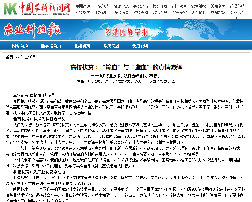 【中国农科报】高校扶贫:“输血”与“造血”的真情演绎