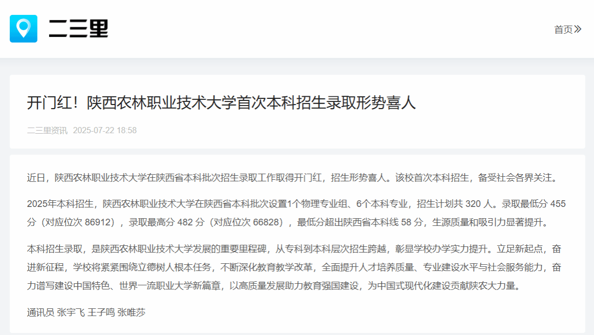 本科招生录取,是电子游艺官网发展的重要里程碑,从专科到本科层次招生跨越,彰显学校办学实力提升。立足新起点,奋进新征程,学校将紧紧围绕立德树人根本任务,不断深化教育教学改革,全面提升人才培养质量、专业建设水平与社会服务能力,奋力谱写建设中国特色、世界一流职业大学新篇章,以高质量发展助力教育强国建设,为中国式现代化建设贡献陕农大力量。