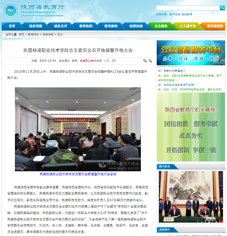 【陕西省教育厅网】民盟杨凌职业技术学院总支委员会召开换届暨升格大会