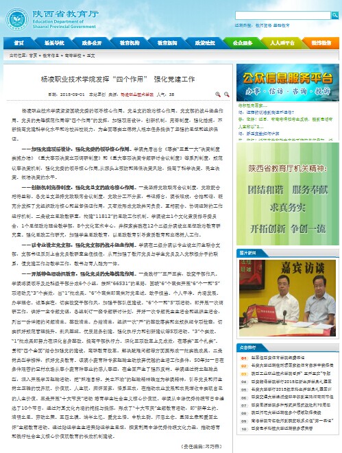 日,陕西省教育厅网站报道了我院发挥“四个作用”强化党建工作的情况(